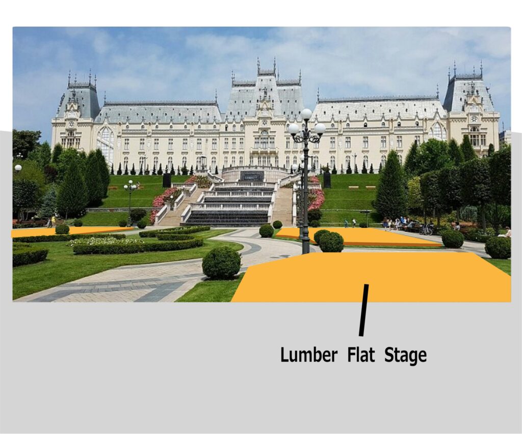 ▼ 芝生の部分に ジャッキを使い フラットな舞台を 作る