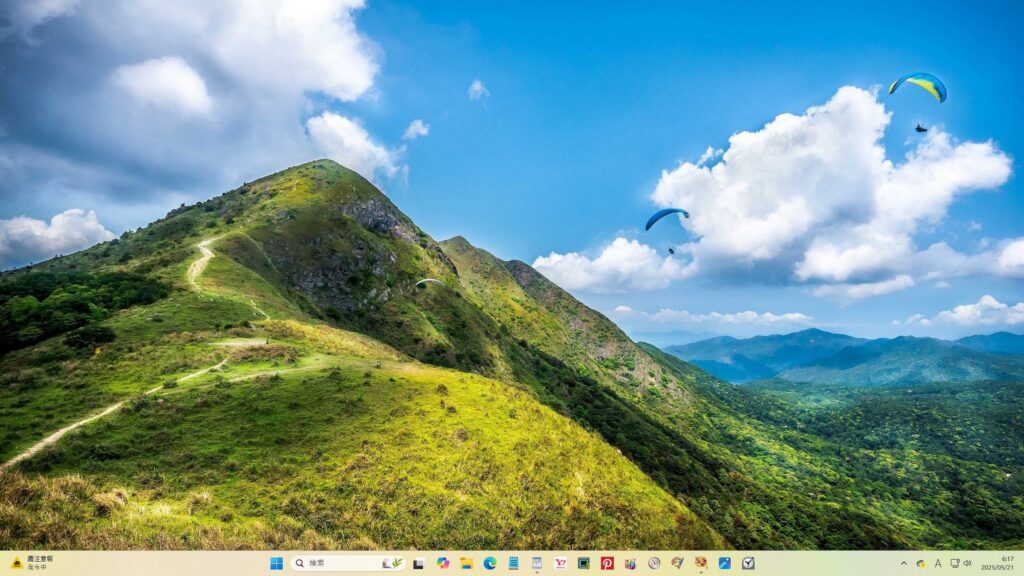 山( やま ) には ふたつの パラグライダー paraglider が 見える