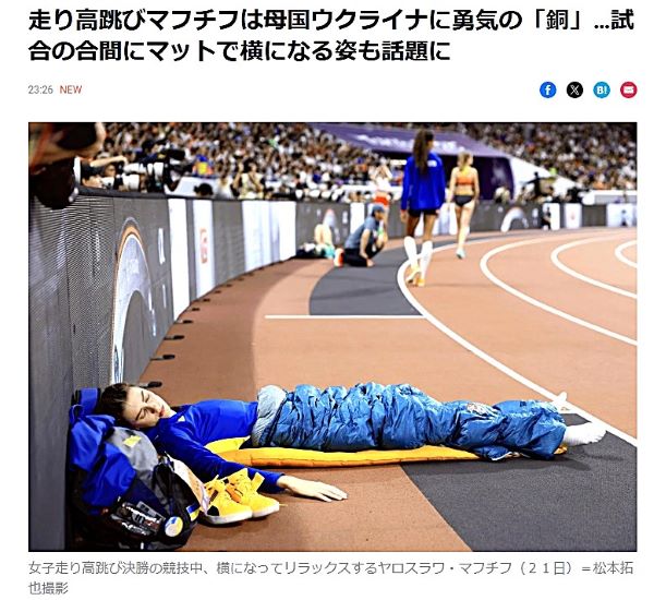 前回( ぜんかい ) 覇者( はしゃ ) で 世界記録( せかい きろく ) 保持者( ほじしゃ ) の…ヤロスラワ・マフチク(23歳、ウクライナ)を…心配( しんぱい ) する 声( こえ ) が ネットで 上( あが ) がった。
