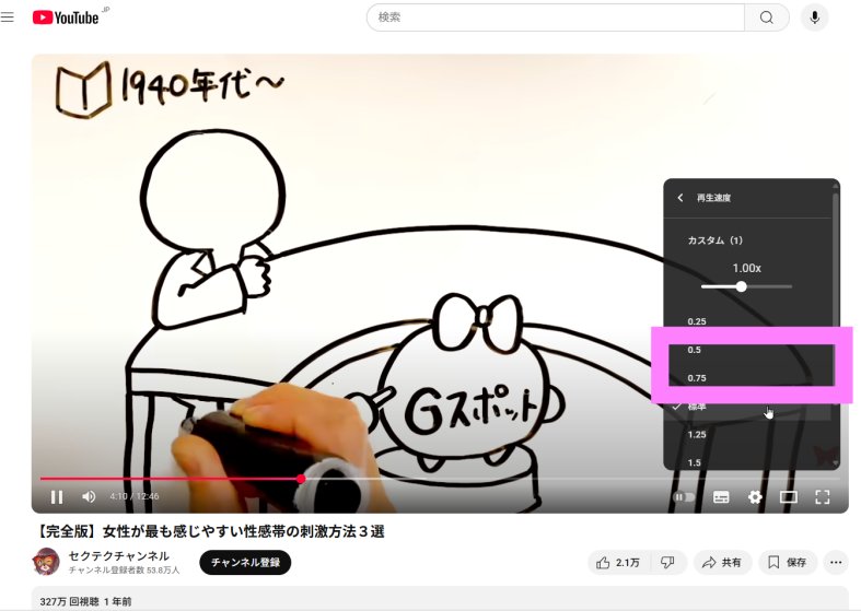 ※ 音声( おんせい ) ….Voice が 早( はや ) く 感( かん ) じる場合( ばあい ) には 再生速度( さいせい そくど ) を 下( さ ) げて ください