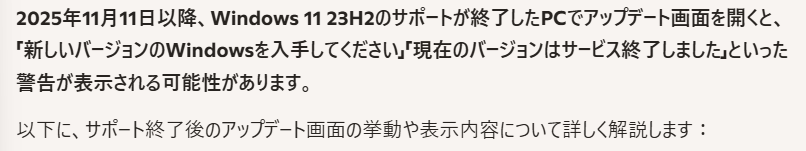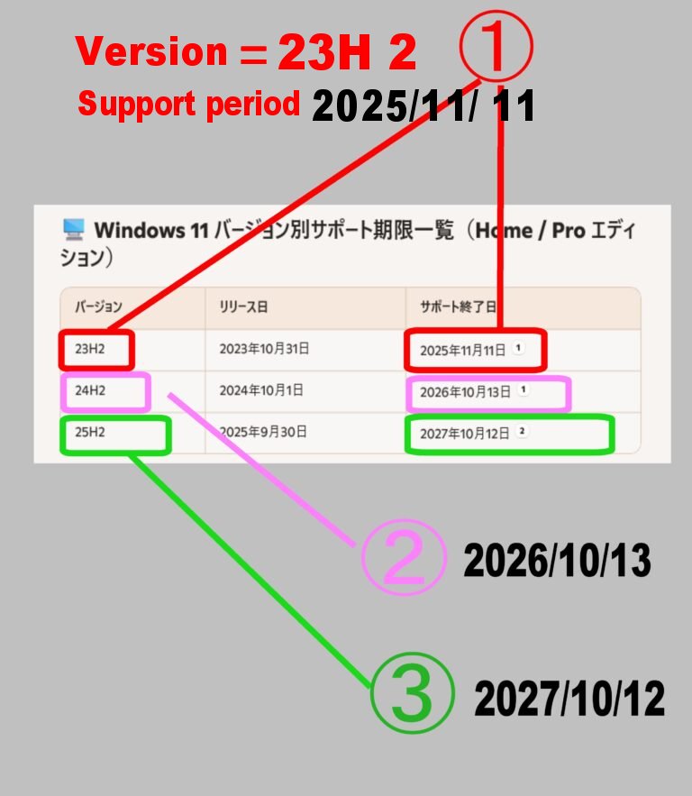 Windows 11 の Version = 23H 2 の サポート期限( きげん ) は ….