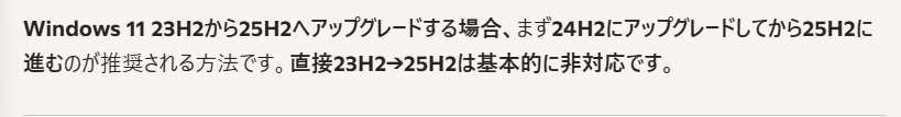 Windows11 24H2/23H2から25H2へアップグレードする方法