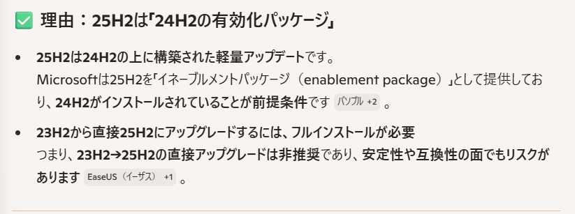 先に 24H 2 が 入っていなければ 25H 2 に アップグレード するのは