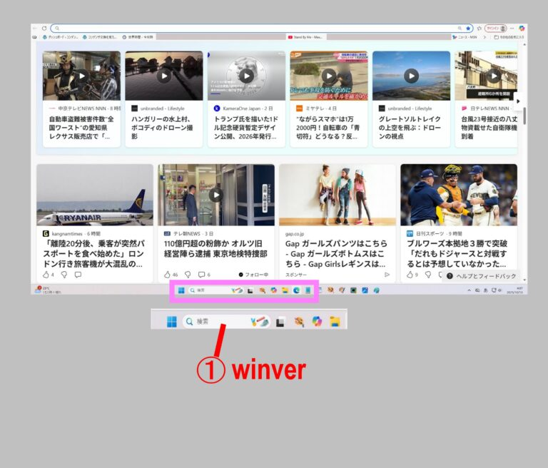 ① の 部分( ぶぶん )に winver と 打( う )ち 込( こ )み キーボード の