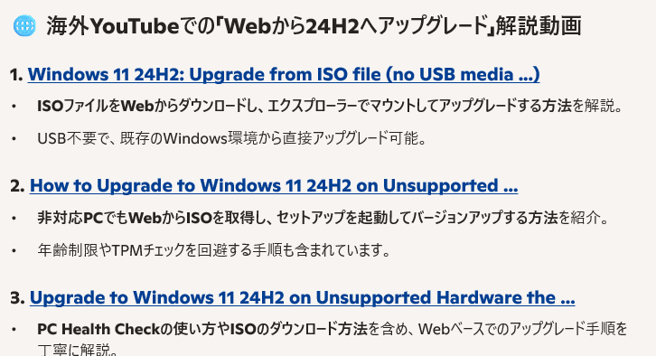 🌐 海外YouTubeでの「Webから24H2へアップグレード」解説動画