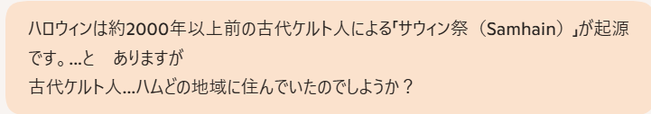 ハロウィンは約2000年以上前の古代ケルト人による「サウィン祭(Samhain)」が起源です。