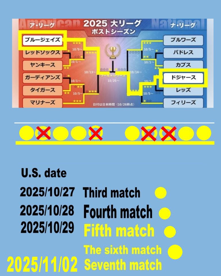 ドジャースvsブルージェイズ MLB2025 ワールドシリーズ…..第6戦 11.1