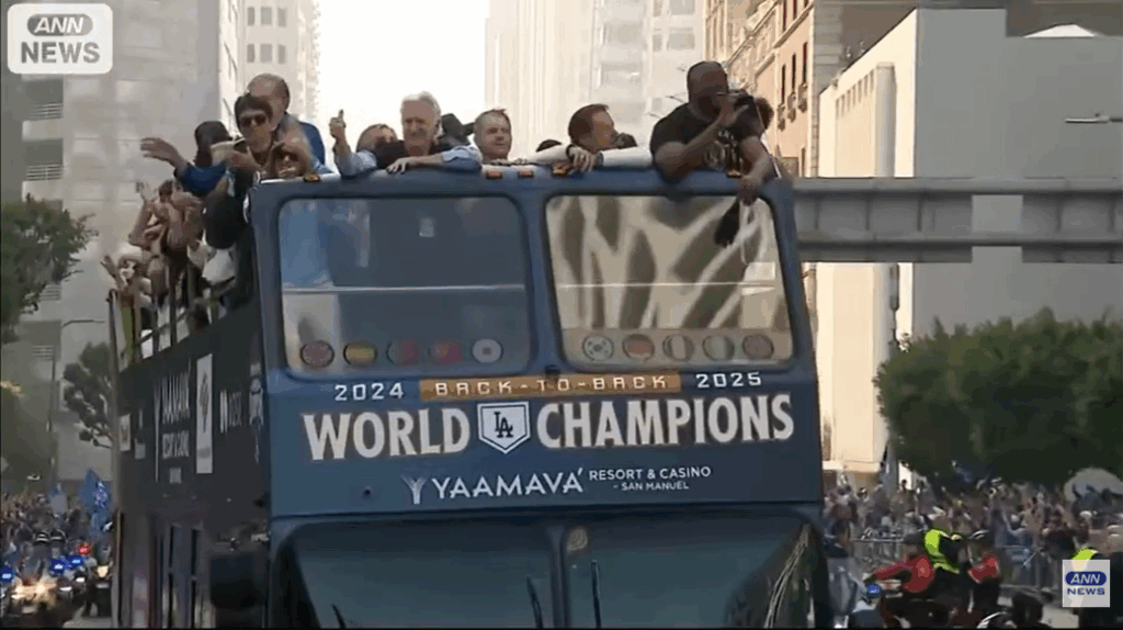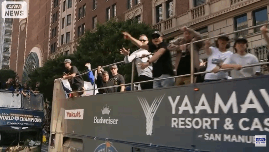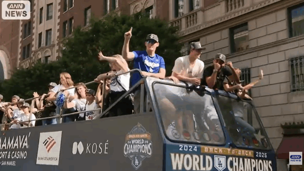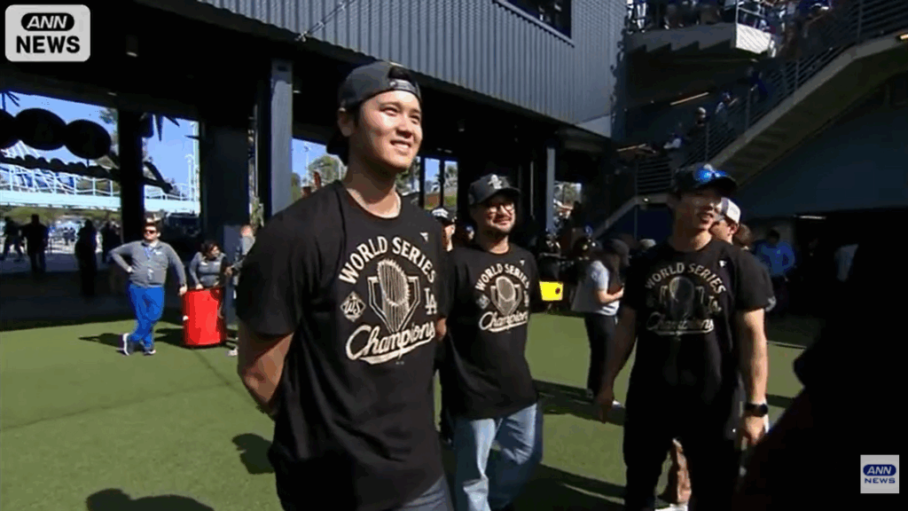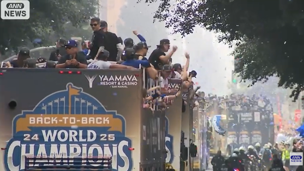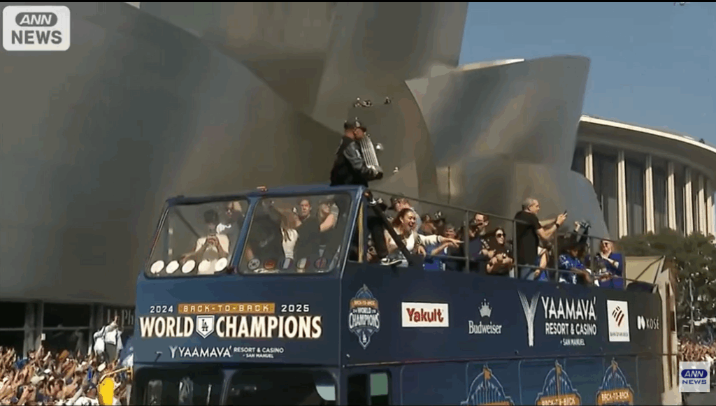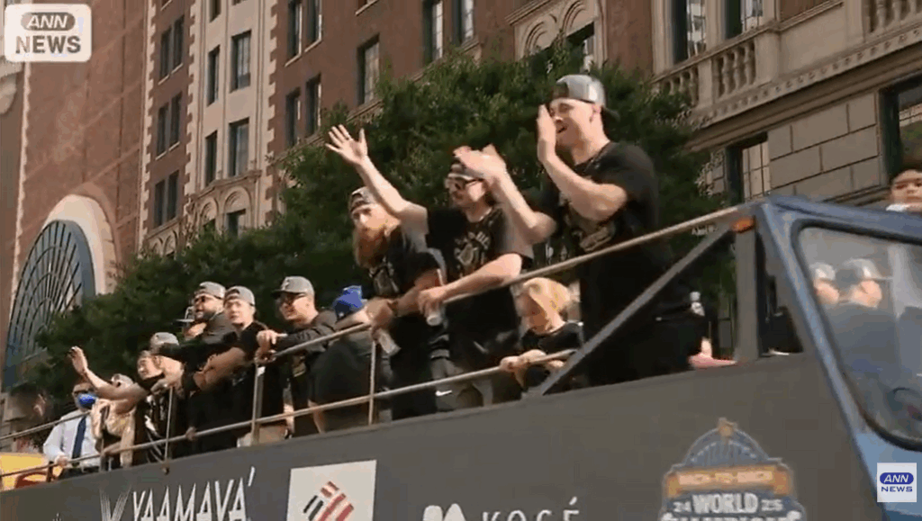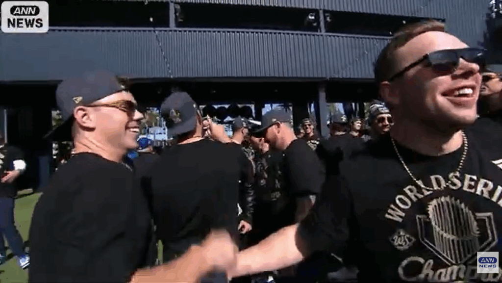 MVPの 山本由伸選手、大谷翔平選手、佐々木朗希選手ら 歓喜の様子 (2025年11月4日) ANN/テレ朝