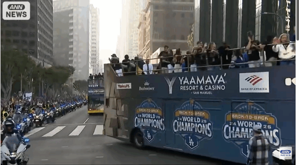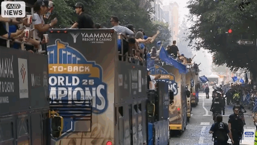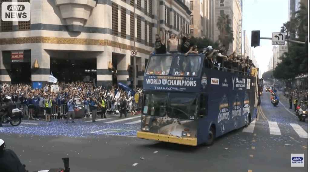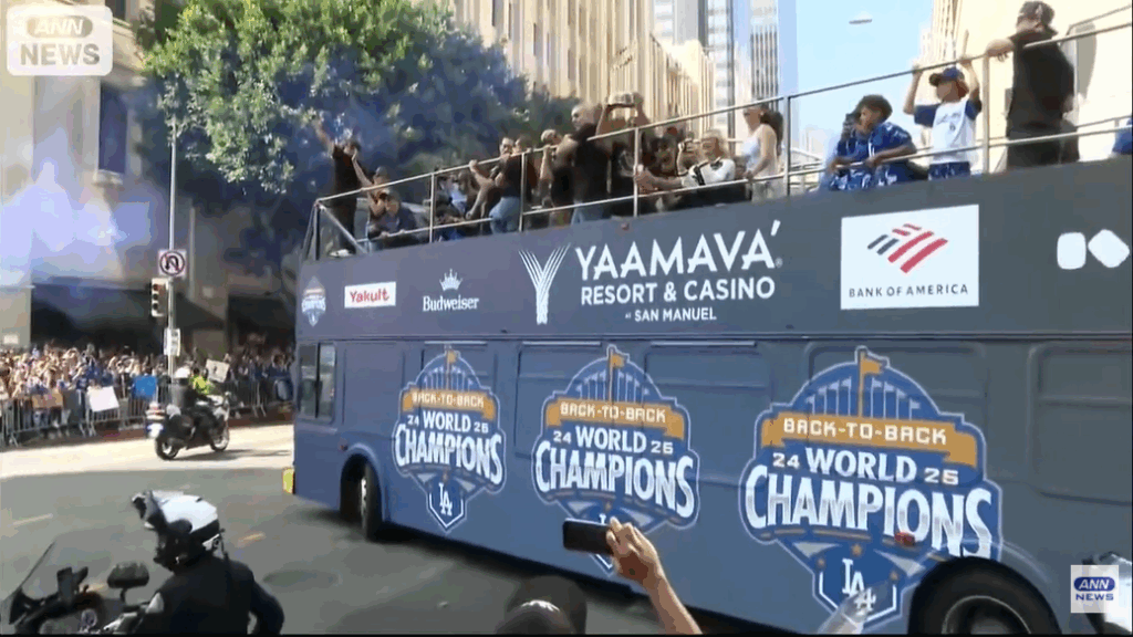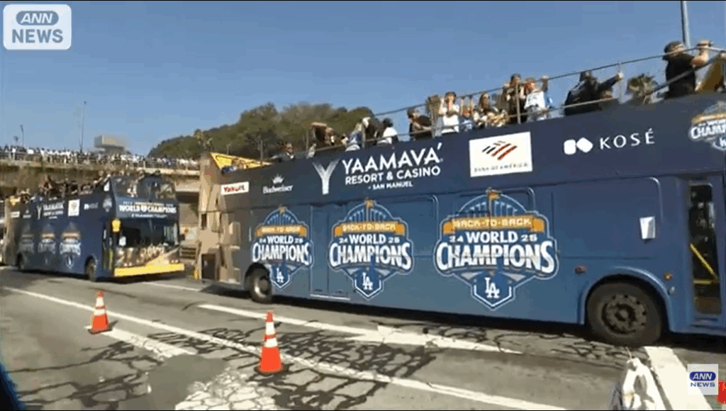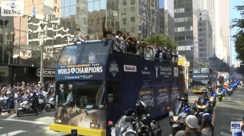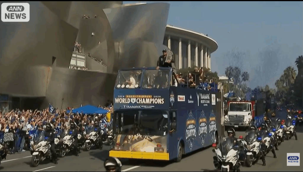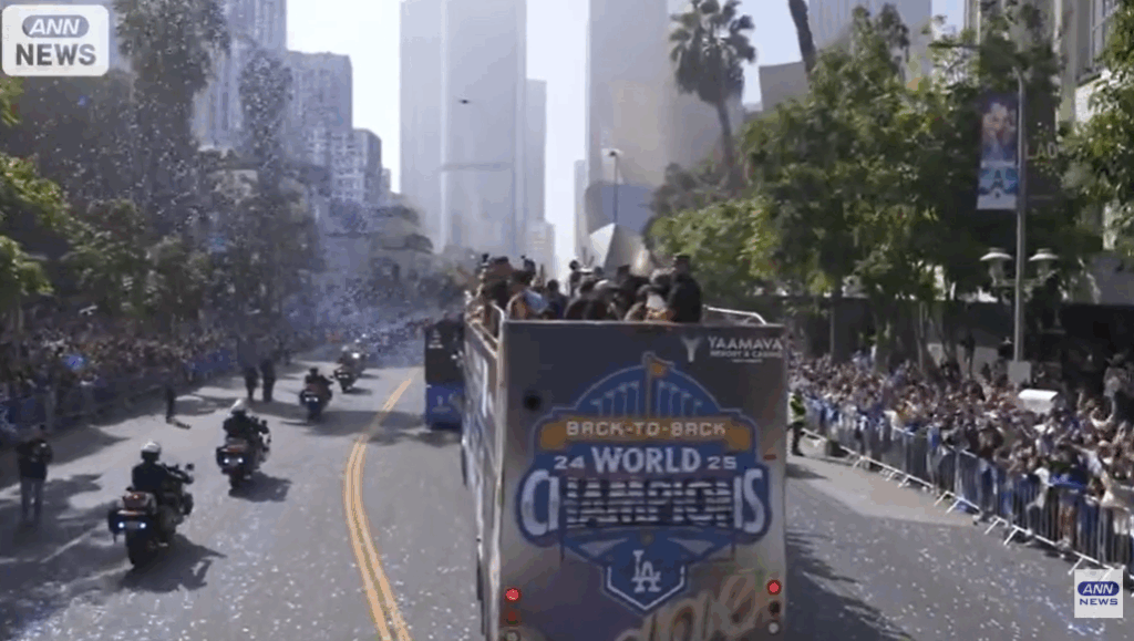 MVPの 山本由伸選手、大谷翔平選手、佐々木朗希選手ら 歓喜の様子 (2025年11月4日) ANN/テレ朝