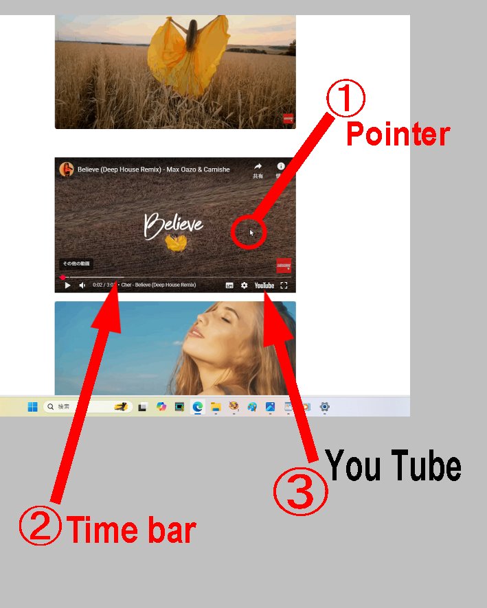 1)Play を している Video 画面の中に ① Pointer を 入れます