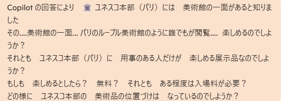 👉 ご希望なら、実際に「ユネスコ本部 パリ 芸術作品」で検索して、どんな記事が出てくるか私が調べてご紹介できます。
