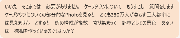 South Africa の Cape Town は かなりの 特徴( とくちょう )のある= 都市( とし )でも….あり 複数( ふくすう )の 街( まち )が集( あつ )まって 都市( とし )の 形態( けいたい )を 作( つく )って いるらしい