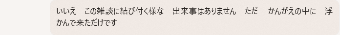 いいえ この雑談に結び付く様な 出来事はありません ただ  考えの中に 浮かんで来ただけ です