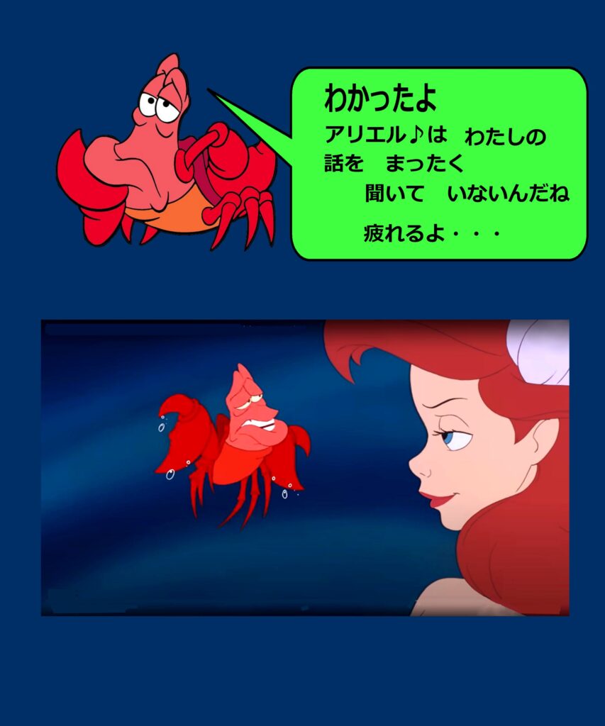 わかったよ アリエル♪ は わたしの 話を まったく 聞いて いないんだね 疲れるよ