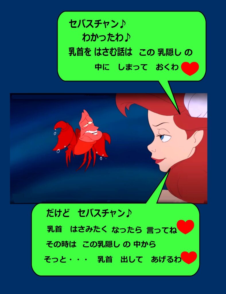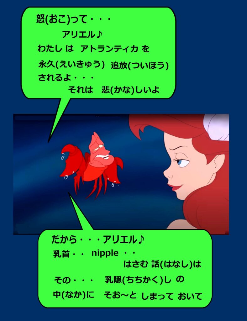 だから・・・アリエル♪ 乳首・・nipple ・・ はさむ はなし は その・・・乳隠し の 中に そお~~と しまって おいて ♪