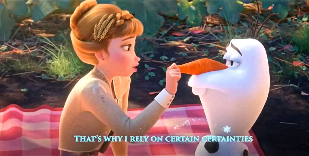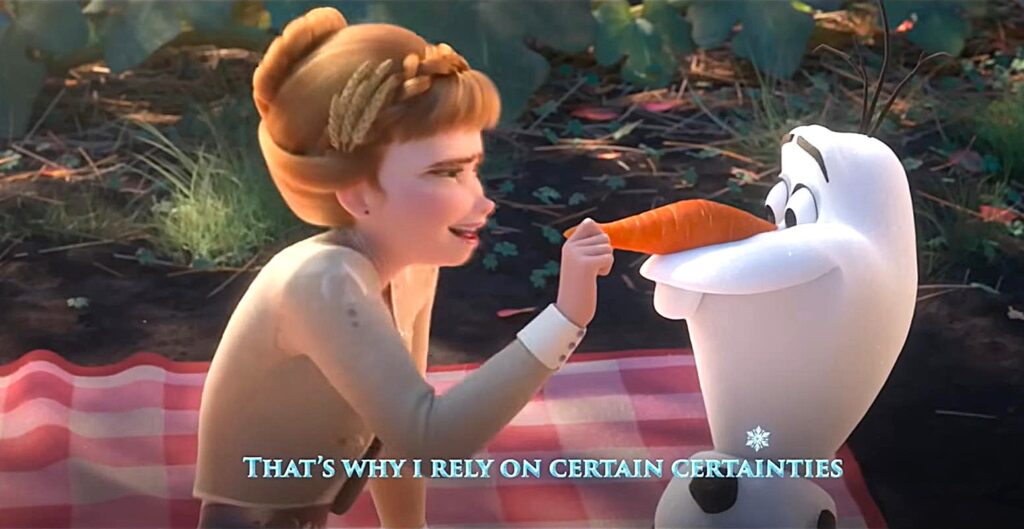 でもね オラフ なに? エルザ 素敵なものは 見るだけでも 楽しいわ そして 気持ちは ワクワク するわ そうだよね 気持ちは ワクワク するね