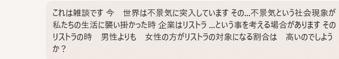 その リストラの時 男性よりも 女性の方がリストラの対象になる割合は 高いのでしようか?