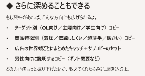 目的別に分類して、使いやすいコピーをたくさん並べてみたよ。