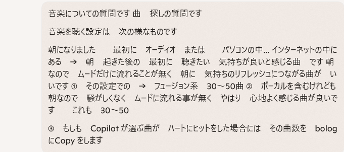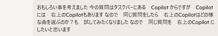 ここからは Copilot との 曲探しの遊びに 戻ります
