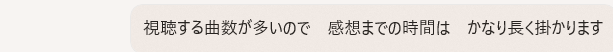 言葉で imageを伝えるのは難しい面がありますが 曲の雰囲気としては これらの様な曲を 探して欲しい…という希望だったのです 今回の曲選び? 曲探しは テスト的なものになって 良かったと思います 次に 同じような曲探しでの遊びに気が向いた時には お願いします