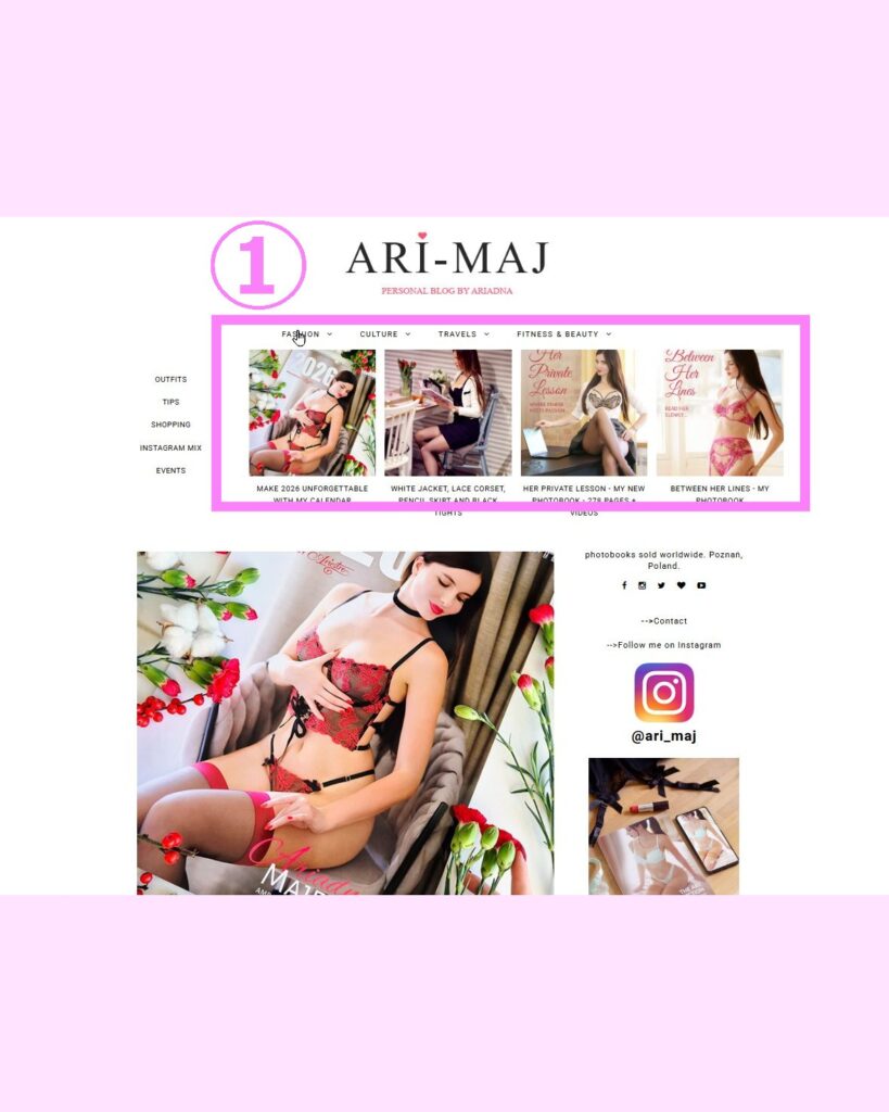 活動( かつどう ): ファッションブログ「Ari-Maj」で….人気( にんき )を獲得( かくとく)、Instagram=フォロワー数( すう )…..170万( まん ) 以上( いじょう )