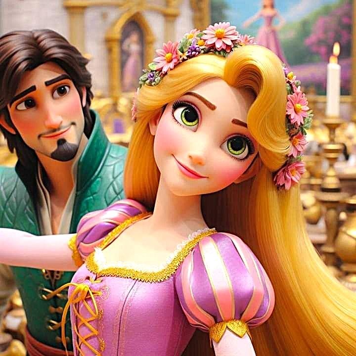 そうそう  フリン ♪  なんだ? ラプンツェル  わたし….. こう なていたわ ♪