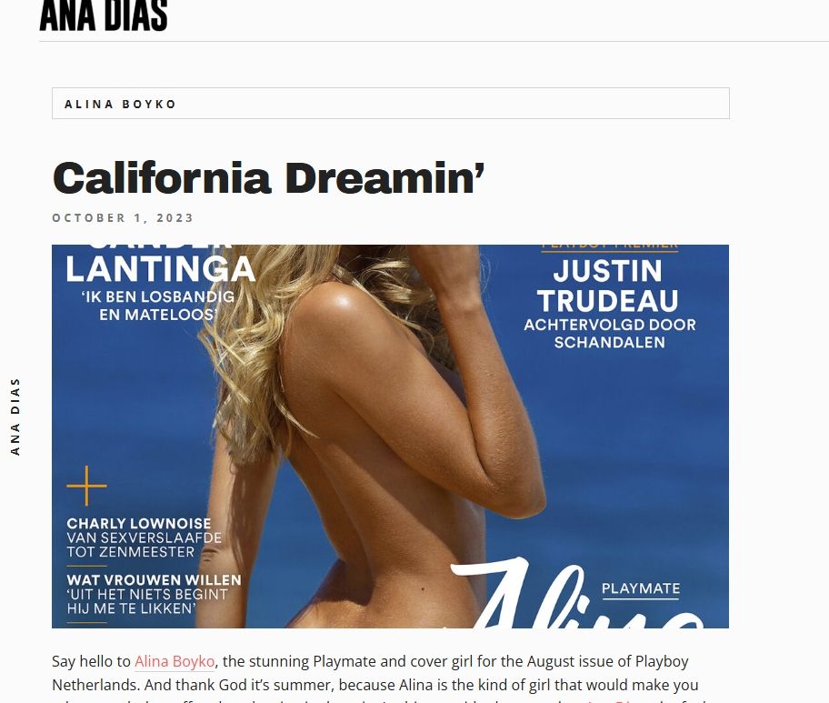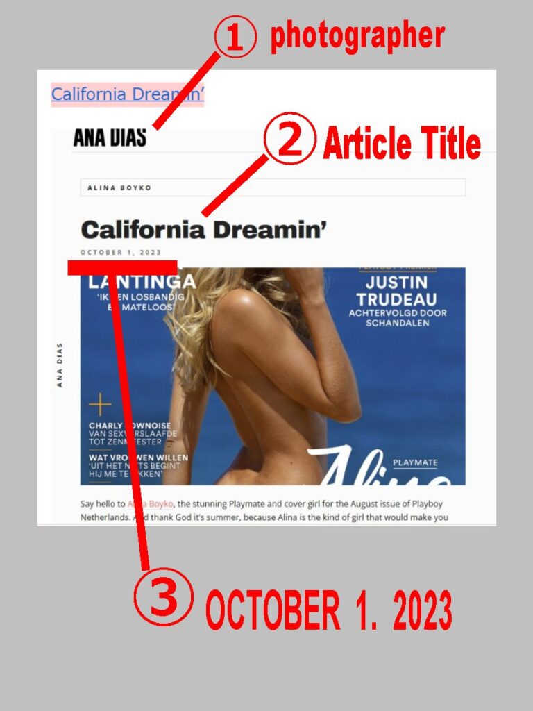 Playboy の時の Photo … まだ 使えるわ… として アリーナ・ボイコ Once More そのことは California Dreamin’ という形になって 約 3年後の October 1. 2023 に 現れた