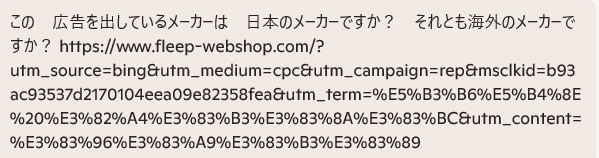 結論:この広告(Fleep / フリープ)は “日本のメーカー” が出している広告です。