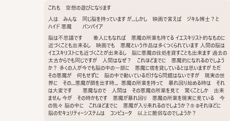 人は みんな 同じ脳を持っています が…しかし 映画で言えば ジキル博士?と ハイド 悪魔 バンパイア