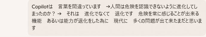 - しかし人間は危険を感じる能力が退化している