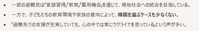 では ウクライナ避難民の体験談….についての 掘り下げをお願いします