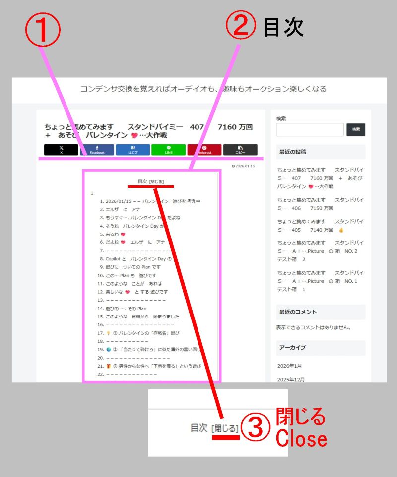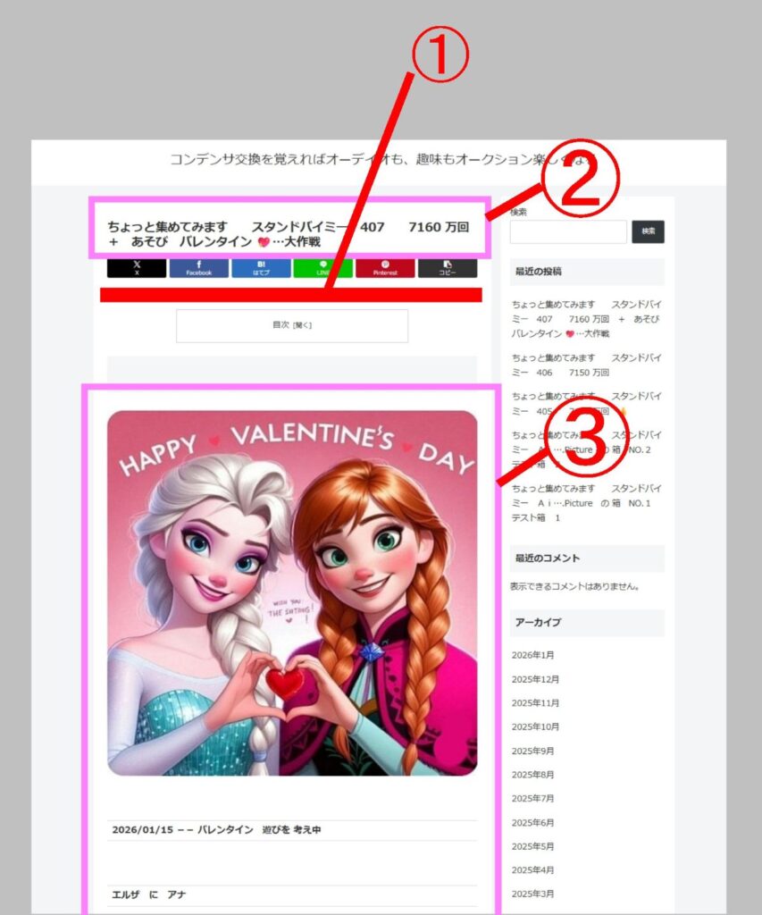 ② の 部分に には 次に開く ページの 文字ボタン =コンデンサ交換を覚えれば….が