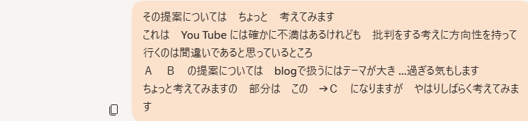 しかし… 会話の 流れを 時系列に整理をして この Page に 入れるのは 大変に難しいので Copilot と 会話した時の ... そのつど そのつど …の会話を 会話の流れという形での整理をしないで 会話ごとの内容を そのまま Page に Copy をする事にしました